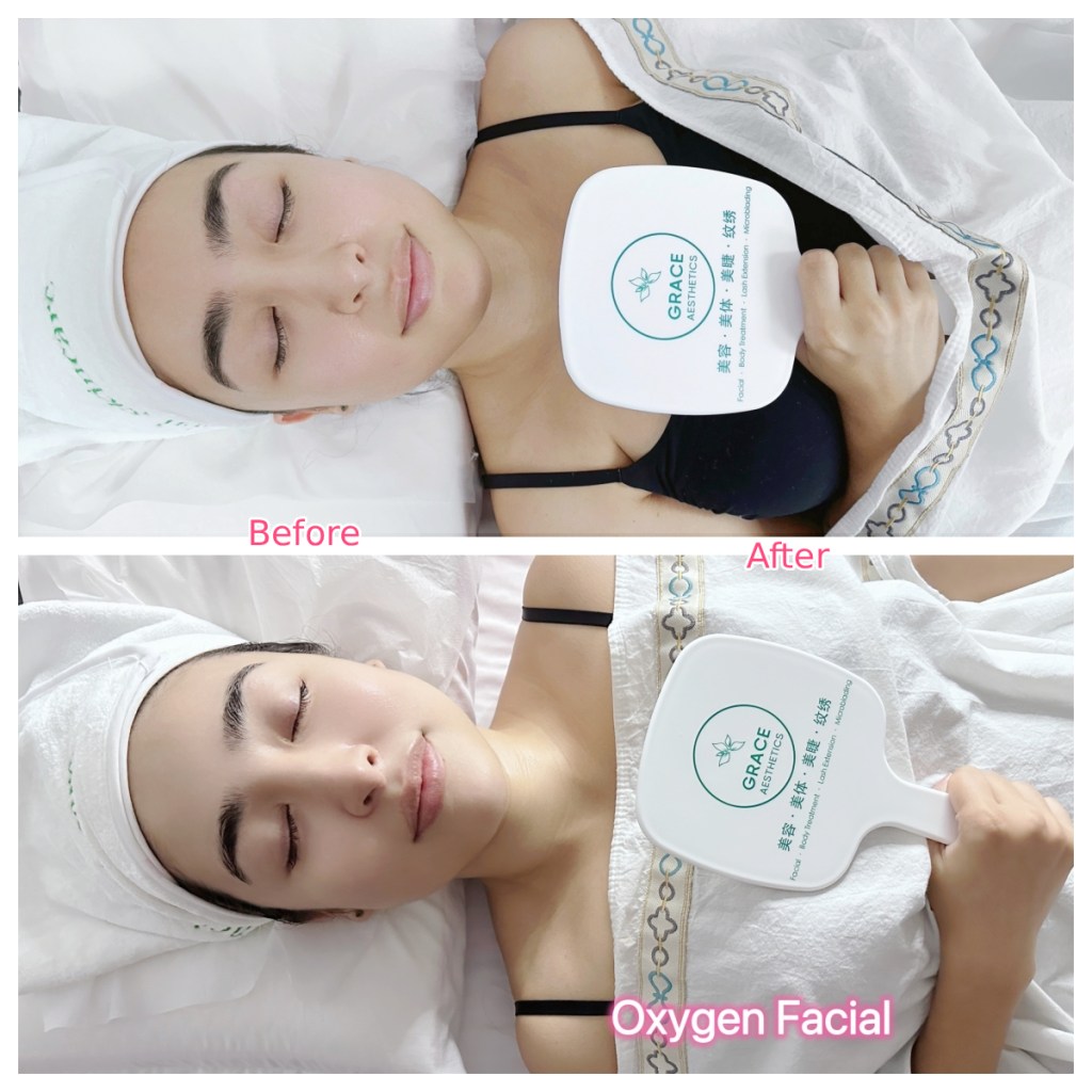 Oxygen facial works by delivering oxygen to your skin cells, helping to increase cell update, which boosting collagen production. The essence goes deeper into the skin layers and does its magic. Along with the high pressure, the smaller molecules essence penetrate into the skin faster. The treatment also has anti-inflammatory properties, which can be performed on the face, neck, or back and help to reduce the appearance of acne and other blemishes. Simultaneously, it deeply hydrates, firms, lifts, and improves overall texture and tone, dramatically reducing the appearance of fine lines and wrinkles.